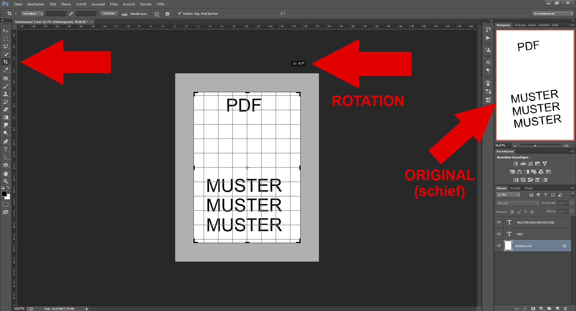 Wenn ich mit PS den Horizont begradige, habe ich wiederum das Problem das der Briefkopf und die Logos schief werden.