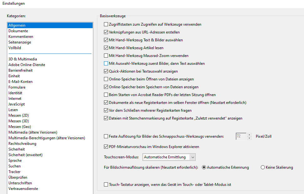 Beim Explorer ist kein Häckchen bei "Immer Symbole statt Miniaturansichten anzeigen" und im Acrobat Reader habe ich "PDF-Miniaturvorschau im Windows Explorer aktivieren" ein Häkchen gesetzt.