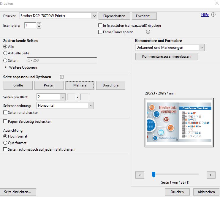 Nun sind die einzelnen Seiten eher Folien, ergo passen 2 PDF Seiten auf eine gedruckte.