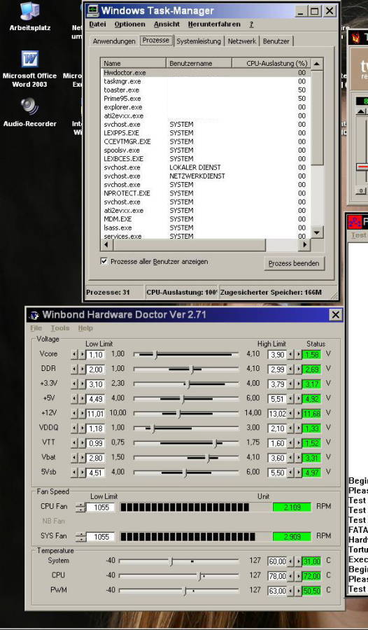 NACHTRAG: So, bei 265 oder 260 MHz FSB tritt der Fehler auch auf, aber erst nach ca. 3 Minuten. Bei 250 MHz läuft der Test jetzt schon seit 14 Minuten ohne Probleme...