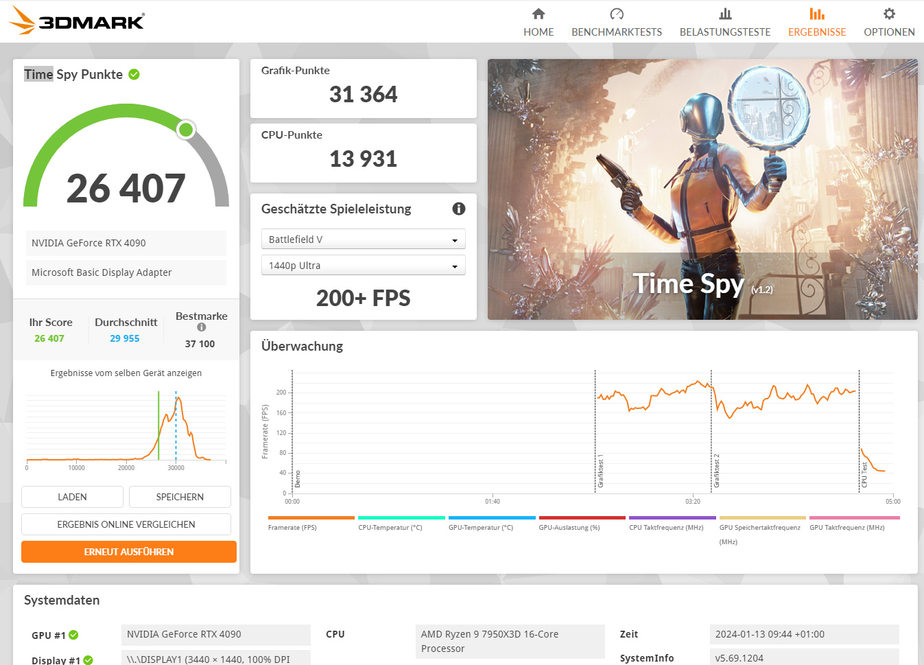 ...Ich hätte gerne eure Meinung zur Leistung des PCs. Mein letzter Gaming PC liegt 20 Jahre zurück, so dass ich versucht habe mich an Tests in der Community zu orientieren. Ich bin niemand der geil auf Testergebnisse ist, aber bei einem PC in der Preisklasse würde ich gerne wissen ob alles passt. Timespy hab ich nur 27000 Punkte erreicht. Cinebench24 ist ähnlich mit den Testergebnissen der CB usern, aber auch letzter Platz. Hat jemand Empfehlungen was ich noch tun könnte? Temperaturen in den Tests waren ok. Ein paar Screenshots zu den gemachten Tests habe ich angehangen.