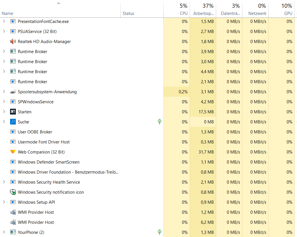 Unter Windows 7 lief der PC hervorragend, auch lange Zeit unter Windows 10, aber mit den ständigen updates dürften nun im Hintergrund sehr viele Prozesse laufen, die die Performance hemmen. Wie kann man dieses Problem in den Griff bekommen, bzw. wie weiß man, welche Hintergrundprozesse deaktiviert werden können?