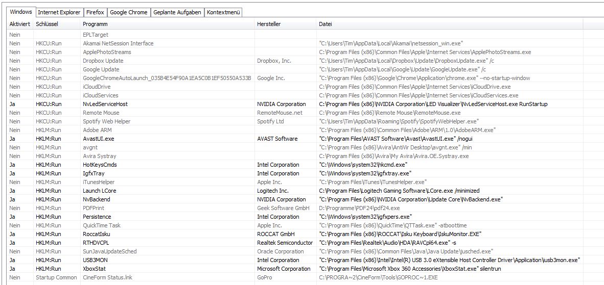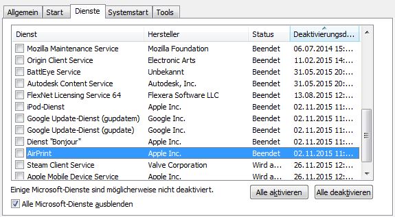 Ich habe immer alle Microsoft dienste ausgeblendet, da ich von denen keine deaktiviert habe, somit ist bei den Diensten von Intel, Microsoft und NVidia alles aktiviert.