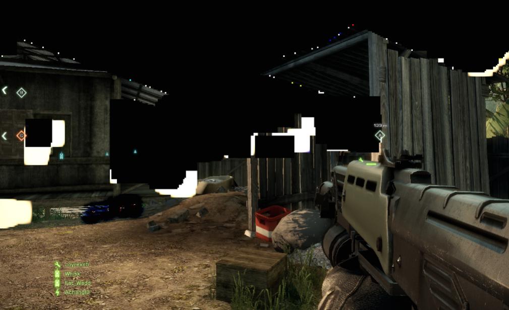 Dazu kommt das wenn er anvisieren will, Kimme und Korn ganz komisch wackeln...das ist auch im Singleplayer so.