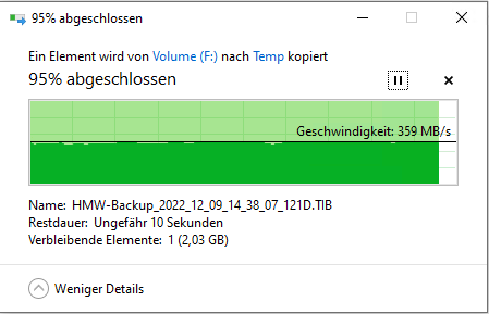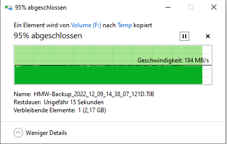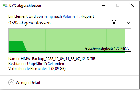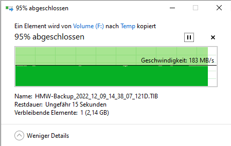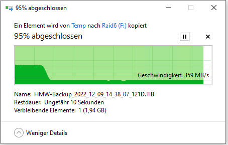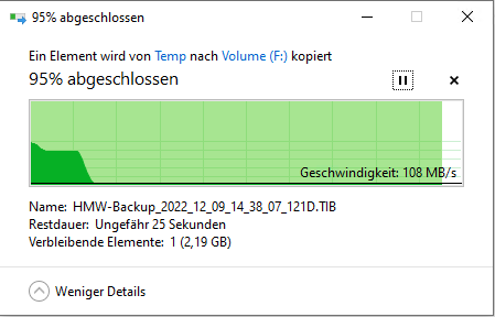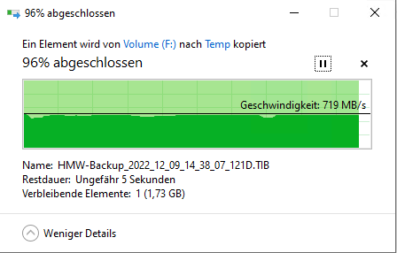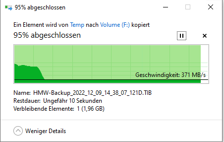 Windows hat beim einzel-Datei Kopieren erstmal den RAM befüllt, daher der Peak am Anfang beim Schreiben (Windows hat da immer mit 1.7GB/s geschrieben).