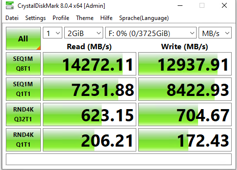 Der Primäre Datenträger von dem Gelesen und geschrieben wird besteht aus 3x WD SN700 NVMe SSDs mit je 4TB und das ganze im Intel VMD RAID 0 gesetzt dass es keinerlei Flaschenhals diesbezüglich gibt.