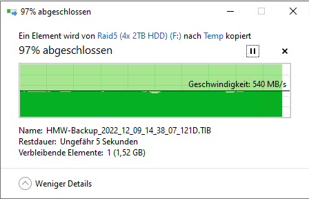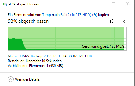 Gibt ja mancherorts das Gerücht, dass z.B. bei nem Raid5 nur so schnell geschrieben werden kann, wie ein einzelnes Laufwerk maximal kann...was so nicht ganz richtig ist und ich das mit Benchmarks und real-Szenario Tests einfach mal widerlegen wollte. Das Raid ist nicht nur solange schnell bis der Cache voll ist - der ist nahezu immer deutlich schneller mit aktivem Cache (WriteBack Cache).