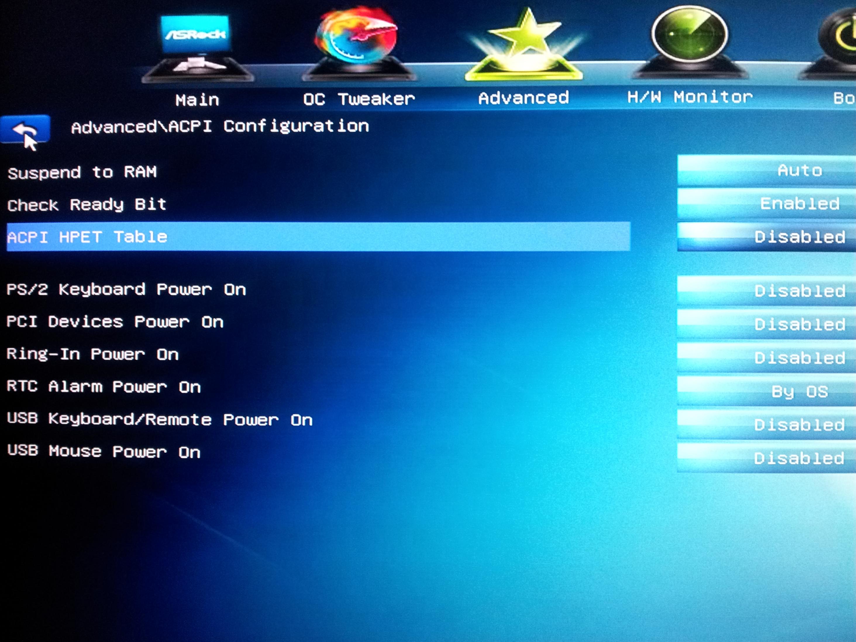 mrc fast boot habe ich ausgeschaltet auch dieses acpi hab ich ausgeschaltet - ohne erfolg.