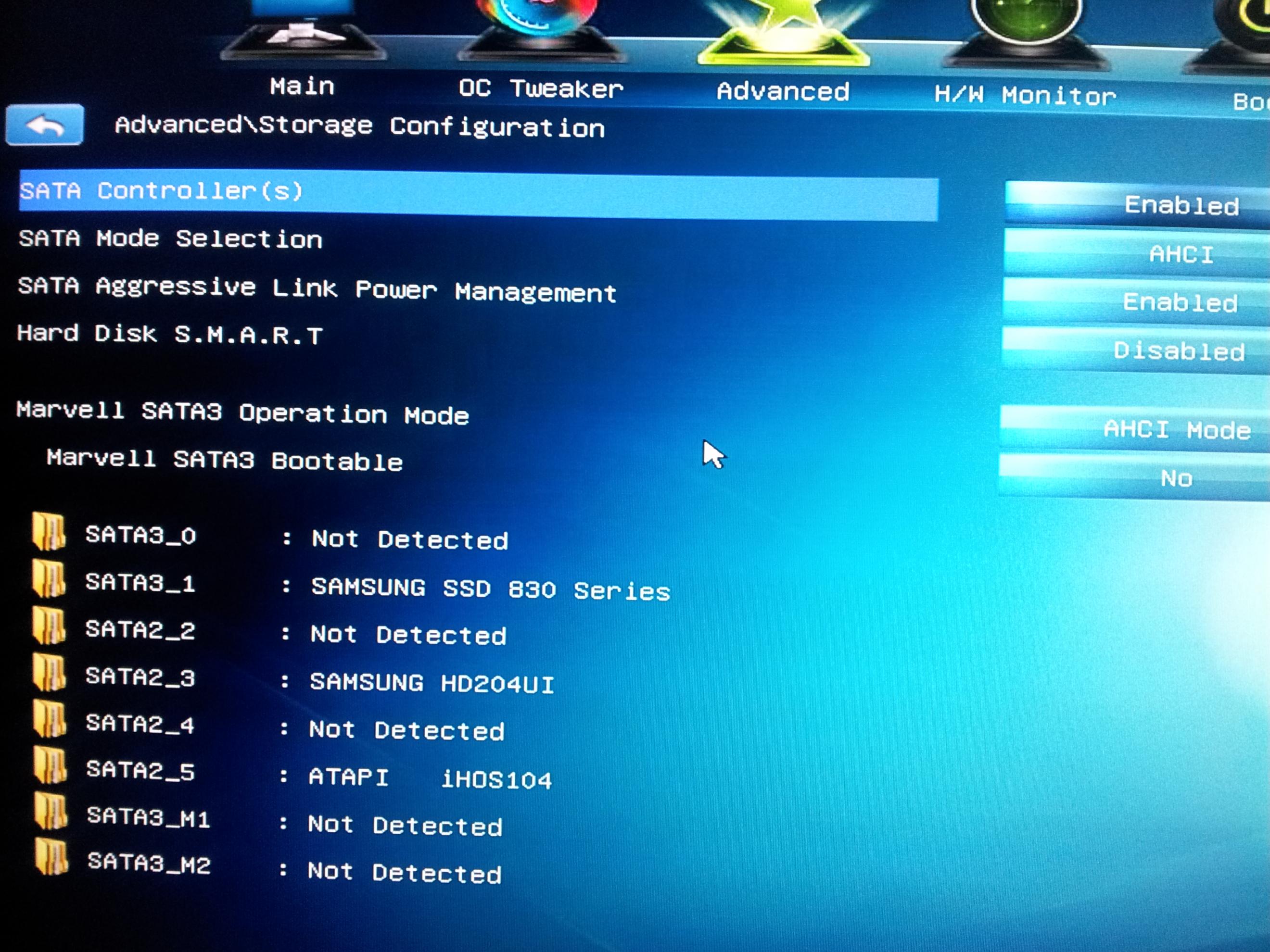 ich weiss nicht ob ich den ahci mode für die ssd richtig konfiguriert habe...is das aus den fotos ersichtlich??