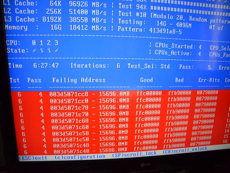 zu einem screenshot kam ich nicht mehr, da ich seit gestern nicht mehr ins BS kam...hab dann über nacht nochmal memtest laufen lassen und diesmal scheint wirklich etwas nicht in ordung zu sein, kann aber das nicht deuten...siehe fotos: