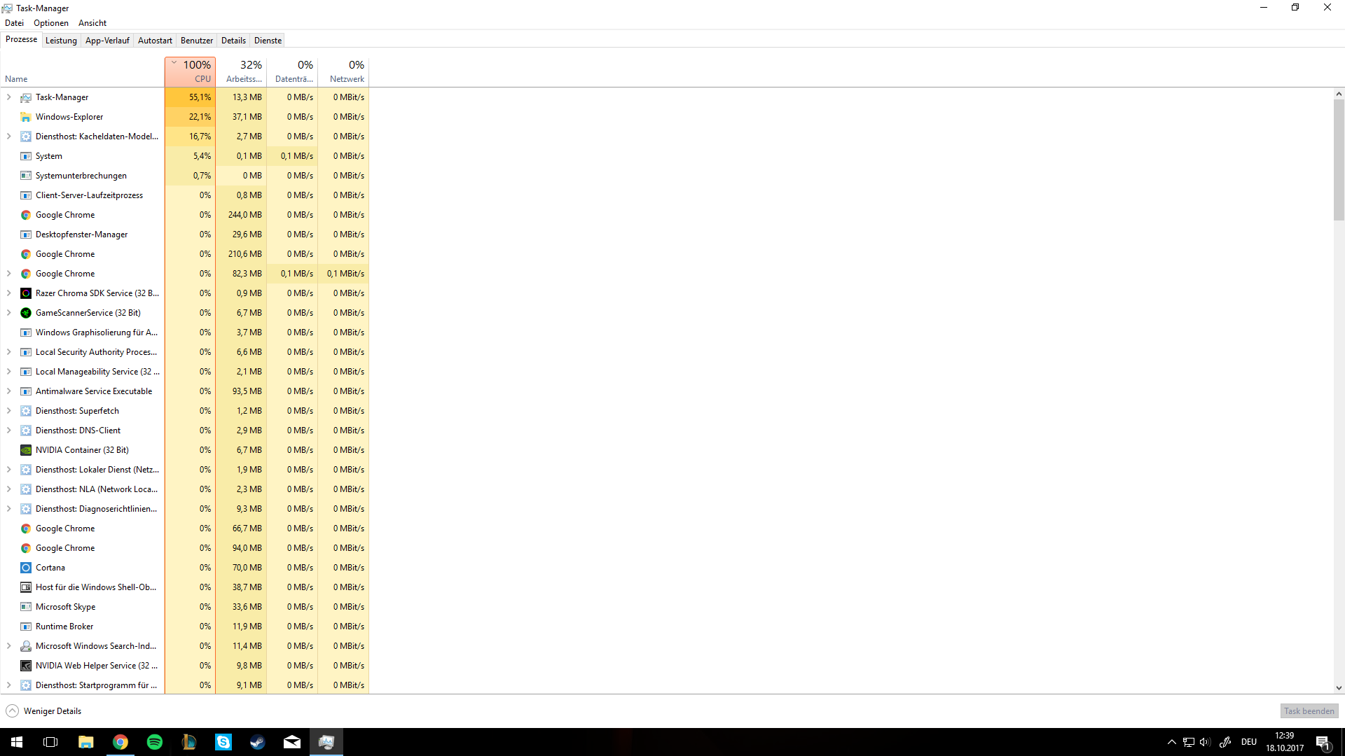 Immer wenn ich den Task-Manager öffne zeigt er an, dass eine 100% CPU-Auslastung vorliegt, obwohl ich keine Programme geöffnet habe.
