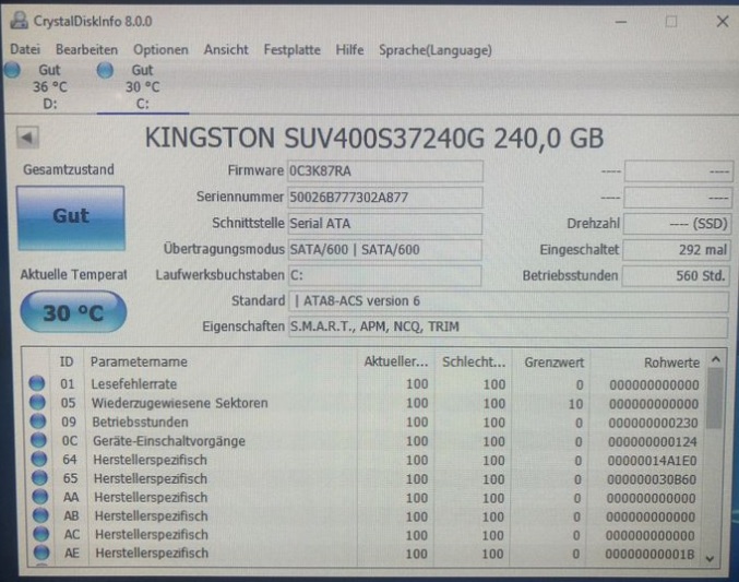 Zwischendurch hatte ich mal eine andere SSD geprüft, diese lief einige Tage problemlos, dann musste ich diese wieder zurückgeben.