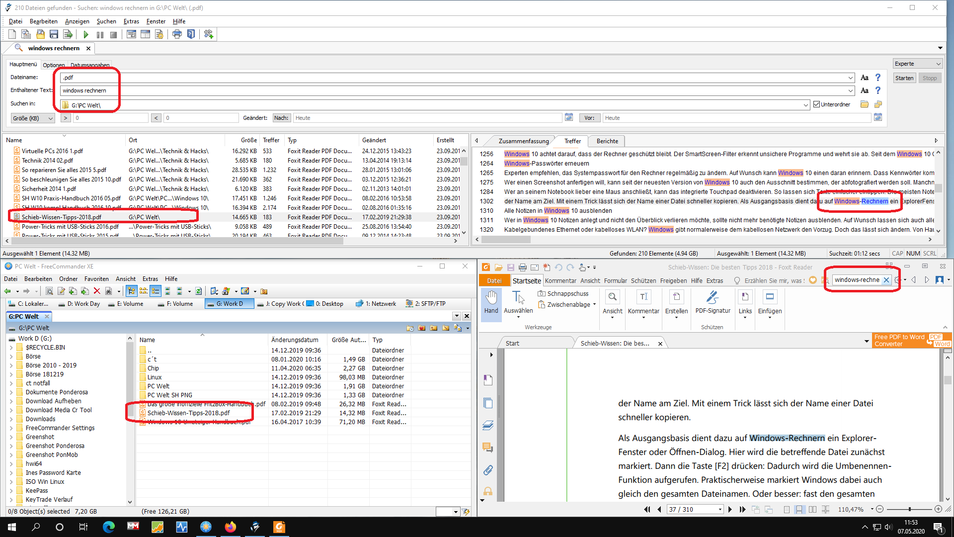 ich möchte bis zu 500 PDF-Dateien gleichzeitig durchsuchen. Die erweiterte Suche im Acrobat Reader ist mehr als langsam. Die Anzeige von PDF und Stelle in der PDF, in der das gesuchte Wort auftaucht, sagt mir jedoch zu.