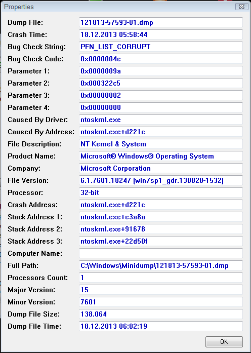 Full Path : C:\Windows\Minidump\121813-57593-01.dmp