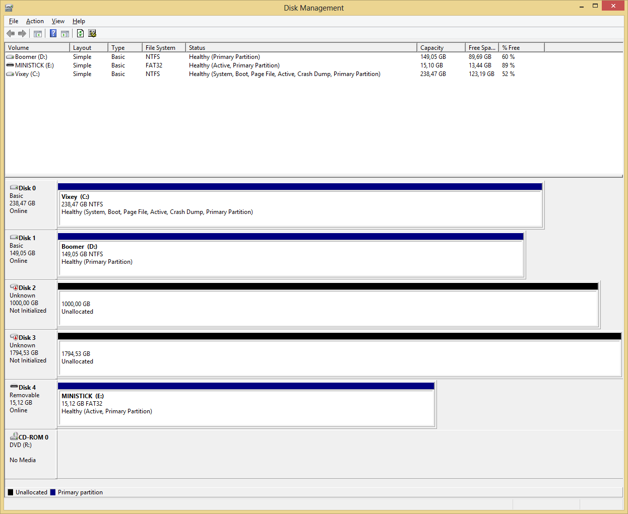 Bevor ich den RST installiert hatte waren alle 3 Laufwerke normal ansprechbar, aber nun werden nur noch die 2 SSDs im Explorer angezeigt. Im Disk Management tauchen dafür 2 uninitialisierte Datenträger auf, einer mit 1TB (passt zur Plate) und ein 1,7TB.