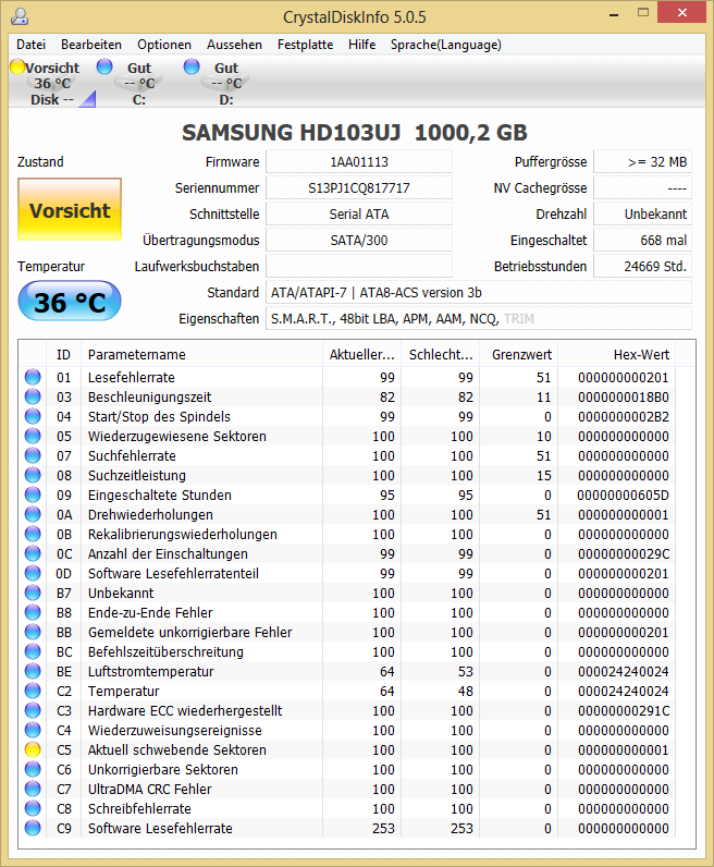Was ich noch weiß ist dass die Platte früher mal in einem Intel-Kompatiblen RAID 5 an einem 3Ware Controller war (zuletzt war sie aber als Einzelplatte in einem AMD System). Können da noch Reste vom RAID Info drauf sein und jetzt rumspinnen?