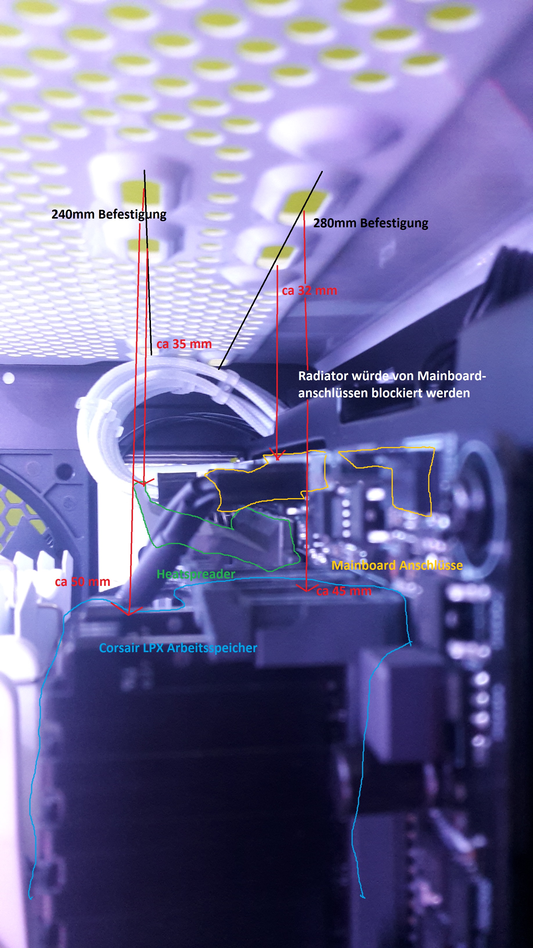 Leider musste ich festestellen, Phanteks gibt keine "Freigabe" für einen Radiator im Deckel... Warum?