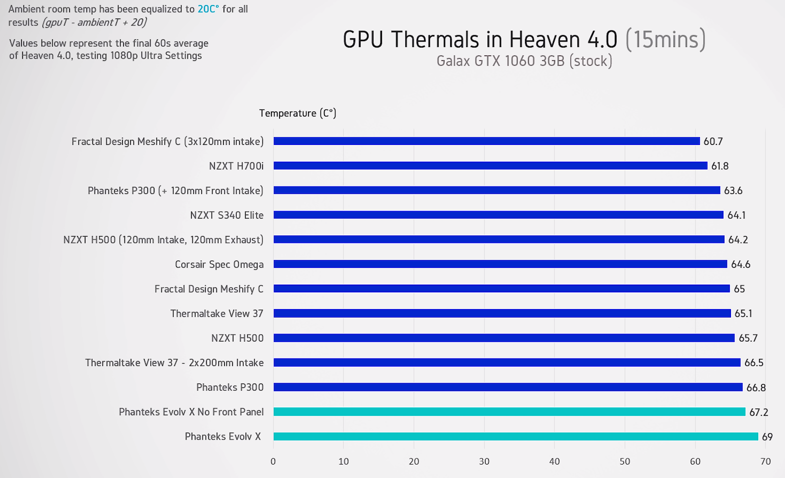 Mich würde interessieren, wie sich das Gehäuse schlägt, wenn man vorne (Intake) 3x 140mm Lüfter und oben (Intake) einen 360mm Radiator im Pull-Betrieb einbauen würde. Der Überschuss an Frischluft müsste doch alle Temperaturen leicht senken.