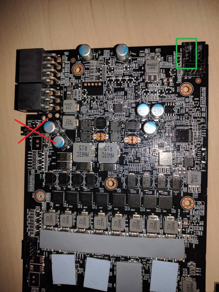 Der Phanteks Glacier Kühler hat auch LEDs und diese habe ich an der Karte wieder angeschlossen.