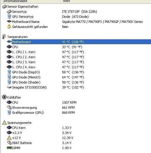 Dann habe ich mal ins Bios geschaut und da liegt die Temp so um die 30 Grad.