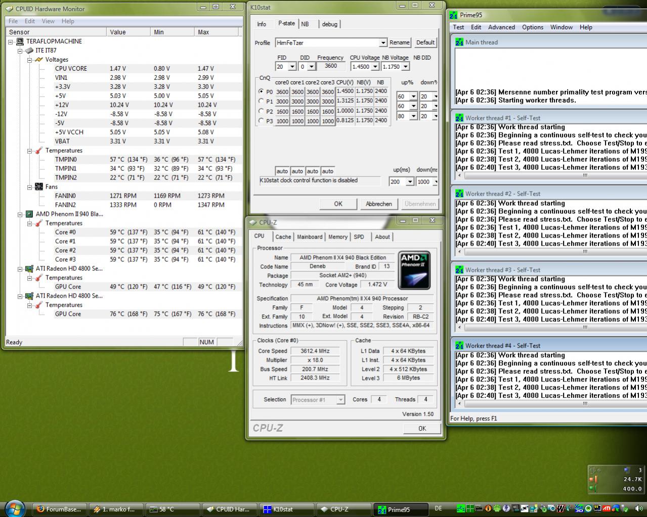 Mein Problem ist einfach das AMD bei den Phenom II eine max. Temperatur von 62°C für die CPU angibt und ich anscheinend kein richtigen Burn In hin bekomme. Habe jetzt Prime95 nochmal mal ne Stunde laufen lassen und bin bei einer CPU Temp. von 58°C bzw. Kern Temp. von 61°C angelangt.
