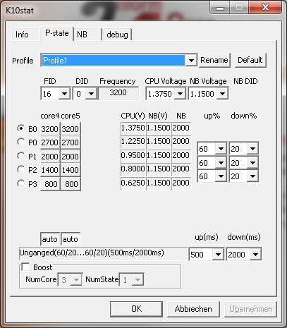 ich betreibe meine CPU in einem ziemlichen kleinen Gehäuse, das auch noch in einem TV-Möbel steckt und somit schlecht Frischluft bekommt. Deshalb wollte ich die Spannung meiner CPU senken. Standardmäßig steht der VCore im Bios bei 1.2250V. Diesen habe ich nun auf 1.1000V gesenkt. Soweit so gut. Schmeiße ich prime95 an und alle sechs Kerne werden ausgelastet, beläuft sich die Spannung laut CPU-Z auf 1.080V. Mit der Standardspannung zeigt CPU-Z einen Wert von 1.216V an. Somit tritt der gewünschte Effekt ein.