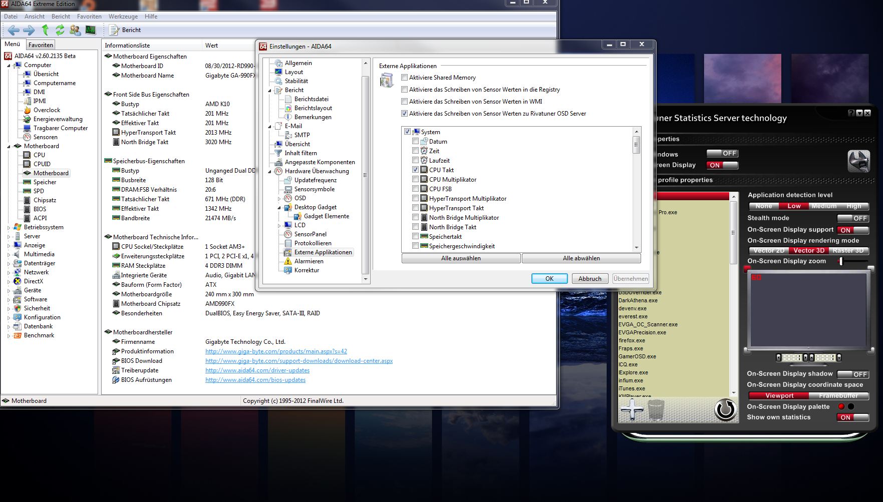 Aida nutzt den OSD Server vom Afterburner mit. was sich beim Aida unter Einstellungen, Externe Applikationen einstellen lässt. Ist sehr praktisch bei Single Monis.