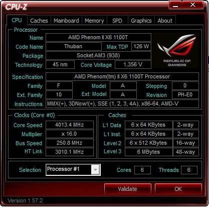 CPUID CPU Name AMD Phenom(tm) II X6 1100T Processor