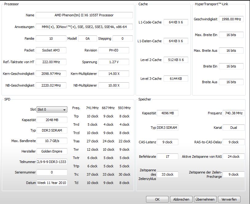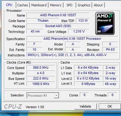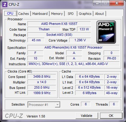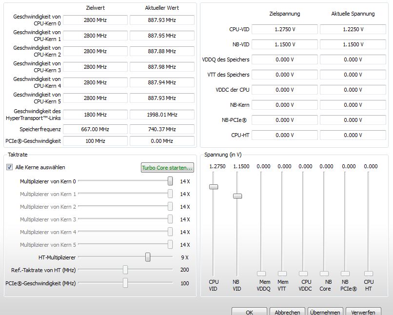 Besitze ein X6 1055T (was normal bei 2.8GHz läuft) @3.1GHz.