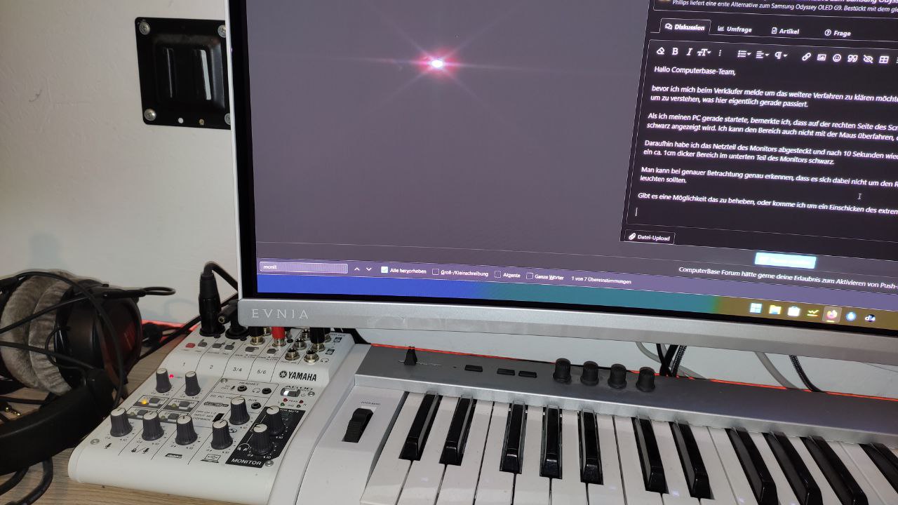 Dass das so nicht sein sollte kann man sehen, wenn man meine Fotos mit den Bildern des Tests bei Notebook Check vergleicht: https://www.notebookcheck.net/Phili...-21-9-ultrawide-OLED-for-gamers.708384.0.html