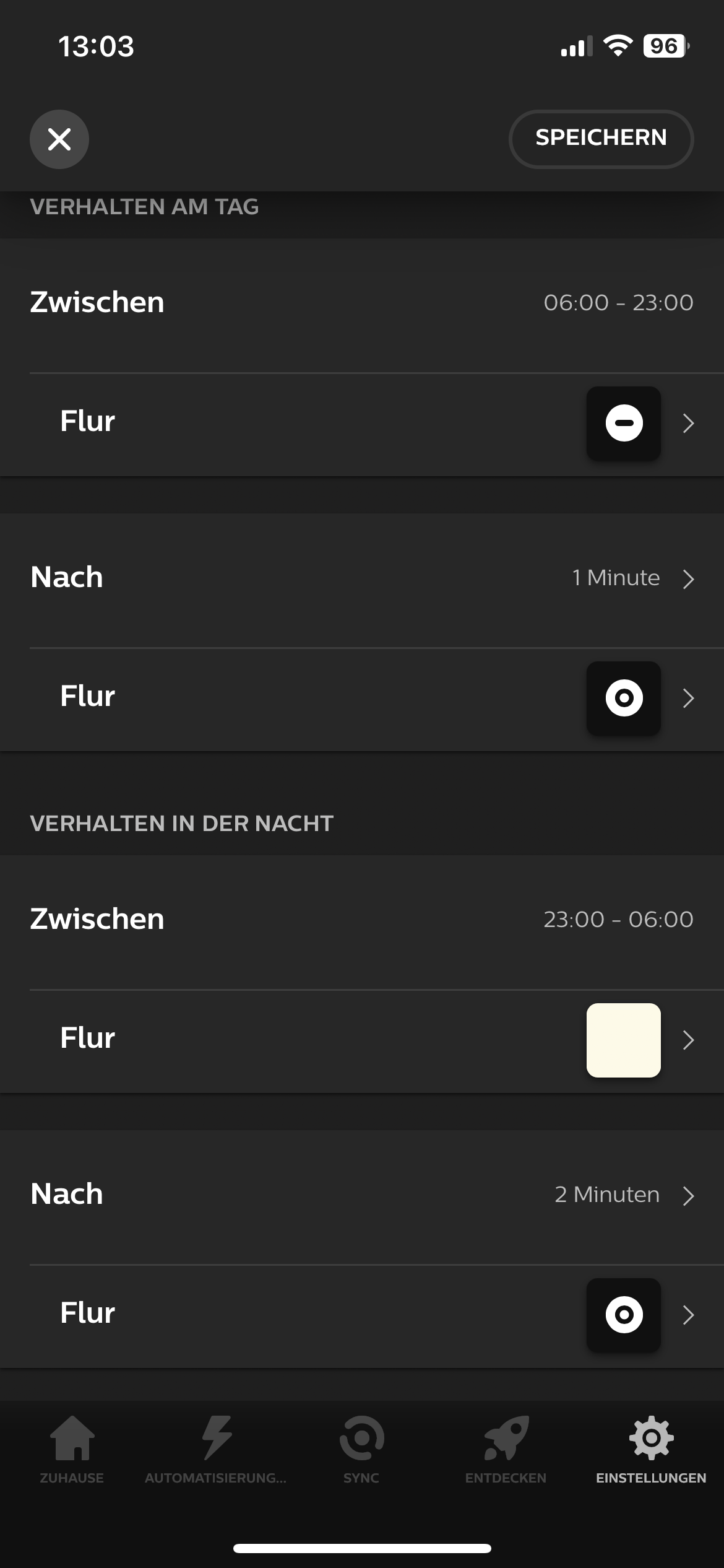 Leider gibt es unter Hue App keine Einstellung Möglichkeiten wo man (Tag) auf Aus stellen kann.