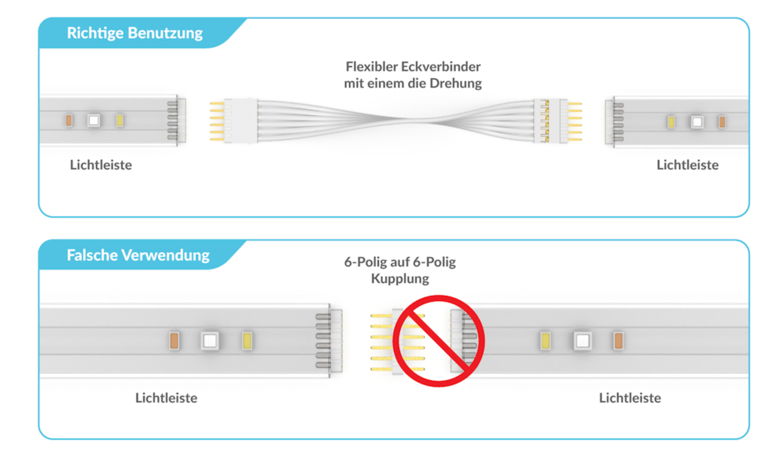 Ist es möglich, in beiden Lightstrips einfach ein 6poligen Stecker als Brücke reinzustecken (ähnlich wie auf dem Bild)? Reicht das als Verbinder?