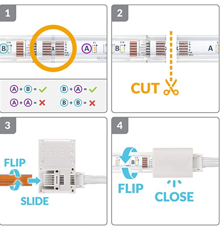 ich habe einen 2m Philips Hue Lightsrip V4 den ich mit einem 1m Philips Hue Lightsrip V4 erweitern möchte. Die Verbinder die dabei sind, sind entweder zu lang (erzeugen dadurch eine zu große unbeleuchtete Fläche zwischen den beiden Lightstrips) oder sind zu dick (Für das LED Profil in die Sie reinkommen sollen).