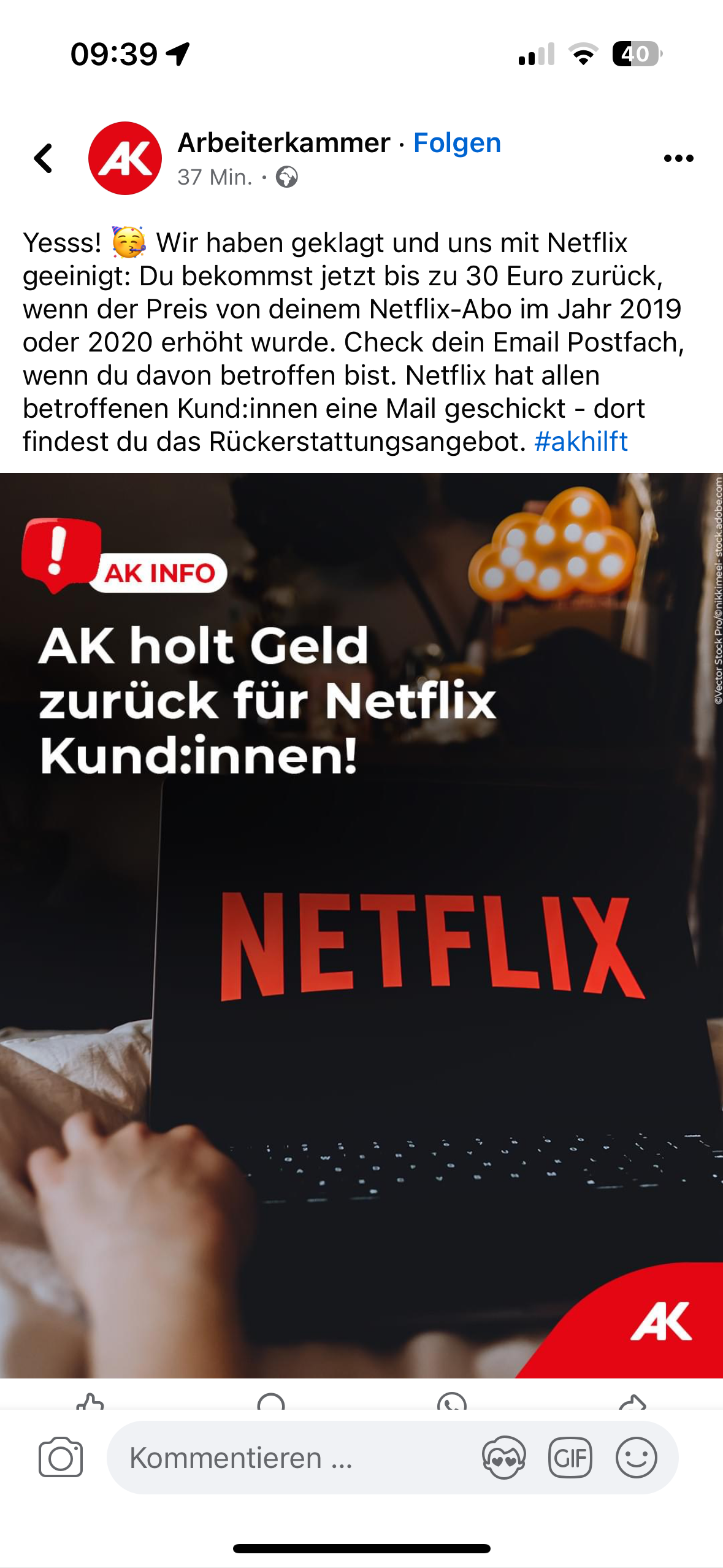 Netflix-Kundinnen und Kunden in Österreich haben Grund zur Freude: Eine Rückzahlung winkt. Nach dem Abschluss eines Einigungsverfahrens mit der Arbeiterkammer könnten sich viele derzeitige und ehemalige Nutzerinnen und Nutzer des populären Streamingdienstes über eine Rückerstattung in Höhe von 20 bis 30 Euro freuen.