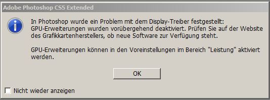 Mit CS5 kommt zwar immernoch die Meldung bezüglich GPU-beschleunigung, aber zumindest stürzt das Programm nicht ab. Muss ich mal sehen wie ich das jetzt mache.