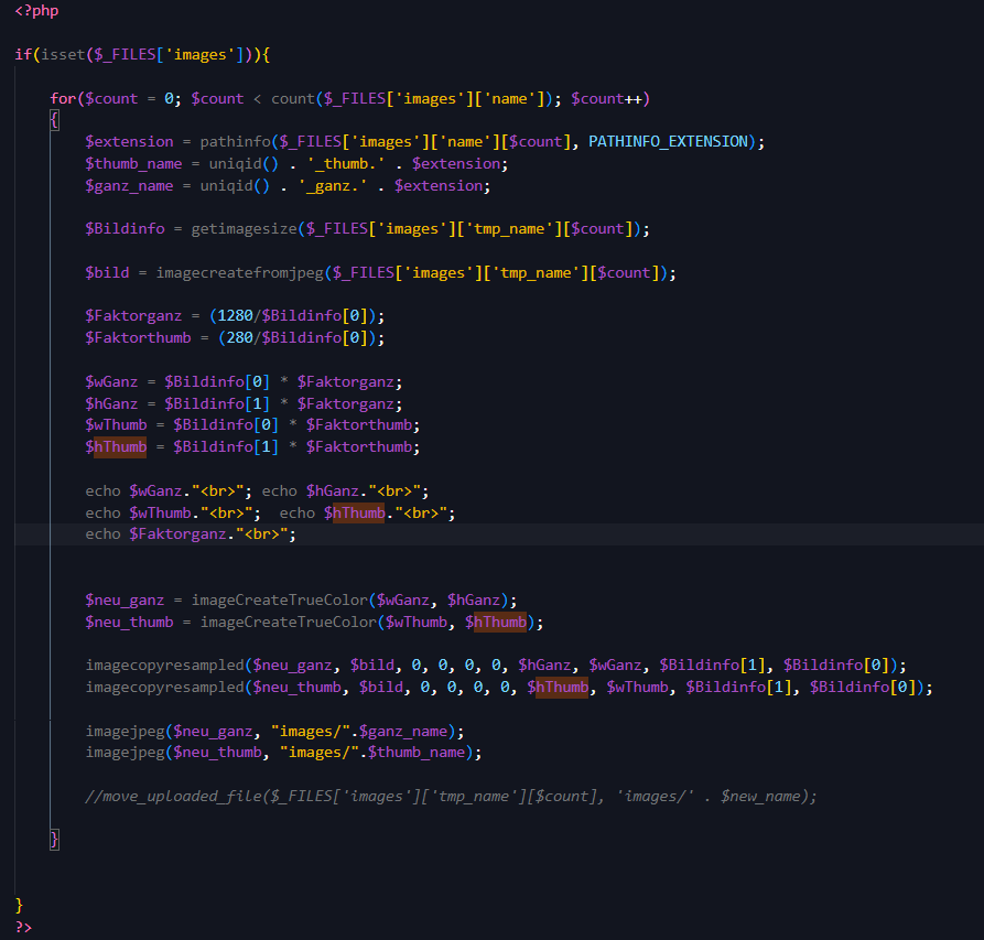 Das Beispielbild ist 1980 pixel breit und 1080 pixel hoch. Es sollen berechnet werden: Eine Kopie die in 1280x768 passt, sowie ein kleines Thumb das in die breite 280 reinpasst.