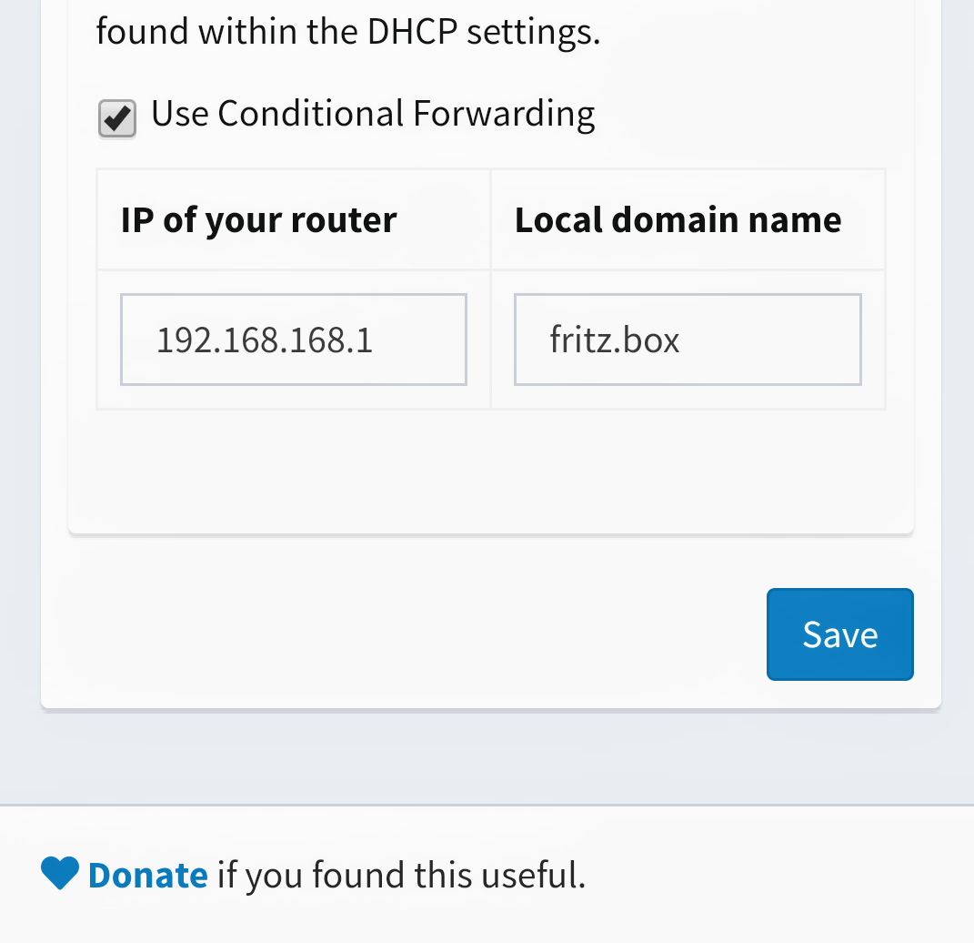 Andere Variante ist, dass für die Clients der Router der DNS Server ist, und der Router die Anfragen an den Pi Hole weiterleitet. Dann funktioniert natürlich fritz.box oder ähnliches auch ohne Eingriff weiter.