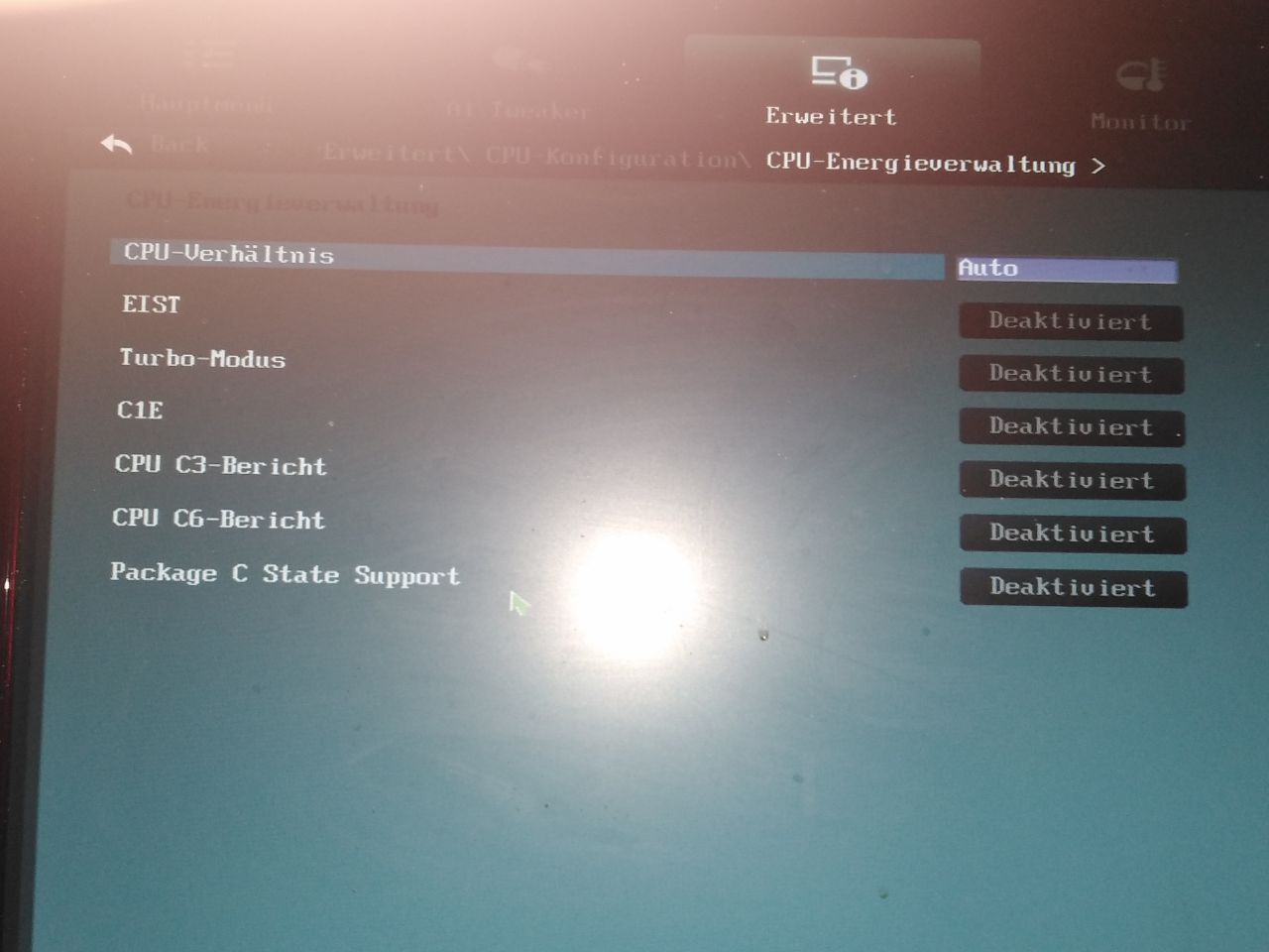 SpeedShift beherrscht dein Prozessor noch nicht - danach brauchst also nicht suchen - und SpeedStep würde ich bei Ivy Bridge auch anlassen. Aber C-States / Sleep-States / Power-States (genau Bezeichnung kann unterschiedlich sein) sollten im BIOS abschaltbar sein. Also ausprobieren sollte schnell gehen und vielleicht ists ja das gleiche Phänomen wie bei mir.
