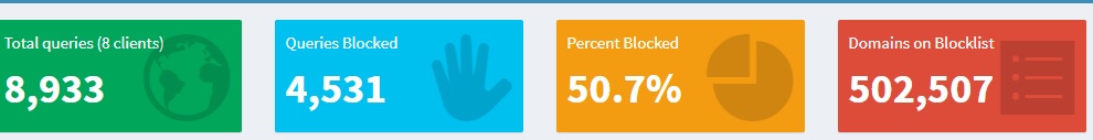 seit einigen Monaten nutze ich nun Pihole und seit kurzem natürlich auch v5. Ich habe etwas mehr als 1.000.000 Domains auf der Blocklist und im Schnitt ~ 10% geblockt. Meine Frau musste ich mit dem Gruppenmanagement (v5 sei Dank!) aus Pihole entfernen, da surfen und besuchen ihrer Klatschseiten quasi unmöglich geworden ist.