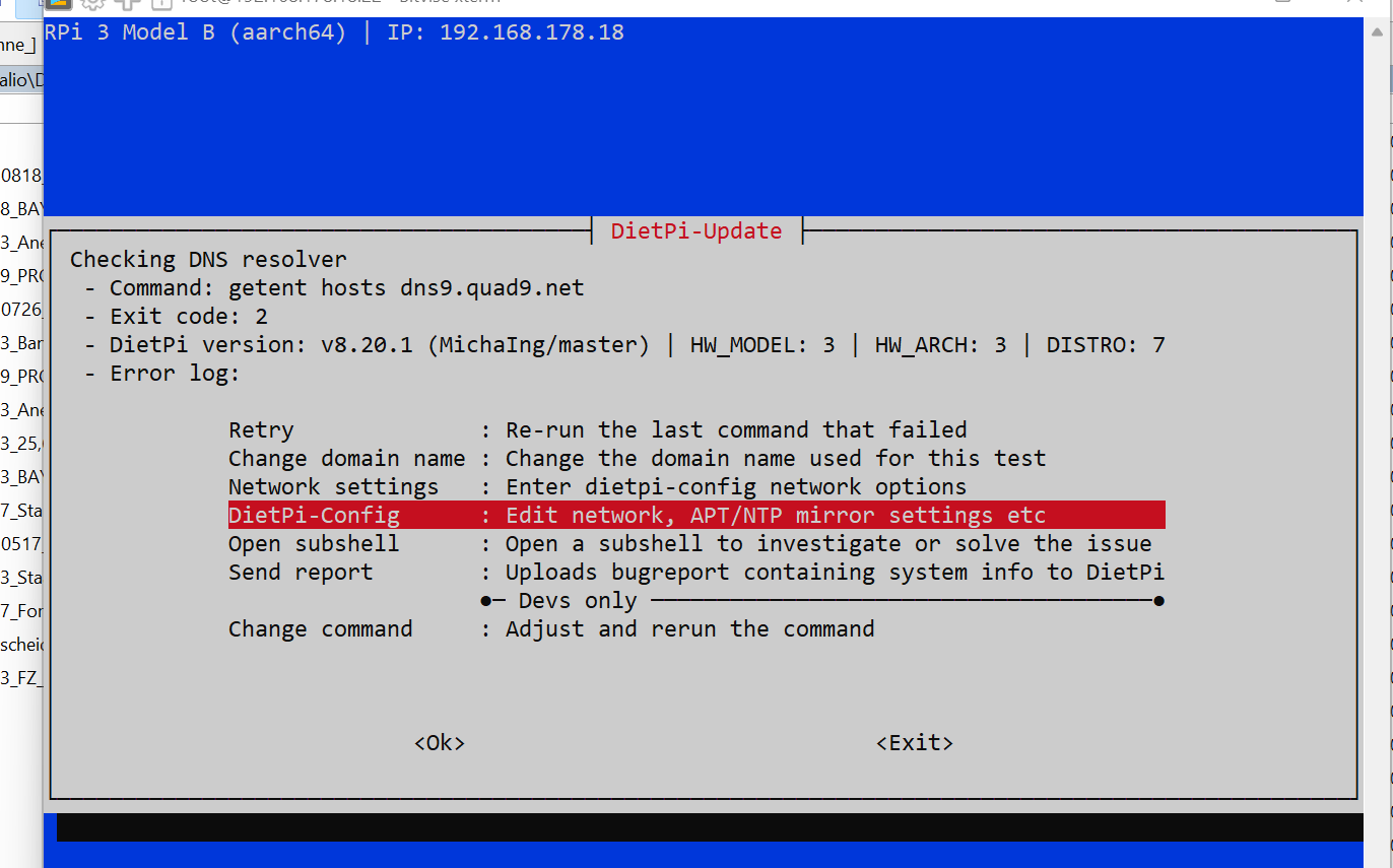 Mach Dich bitte nicht mit der Kommandozeile heiß, DietPi wird alle Konfiguration über das textbasierte Menü für Dich erledigen.