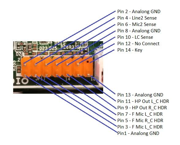 Der Audio Stecker vom Audio Panel ist 14-polig, wovon 9 Pole belegt sind. Auf dem MSI Board gibt es nur einen 9-poligen Pin Header, sodass ich die Belegung ändern muss.