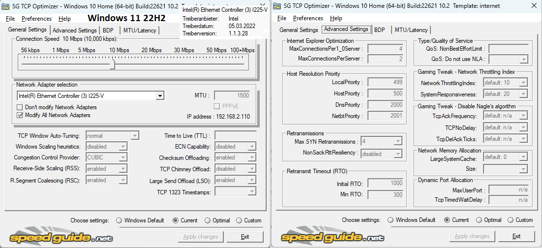 onboard-NIC: Intel I225-V Netzwerkkarte mit Treiber 2.1.2.3 vom 21.09.22