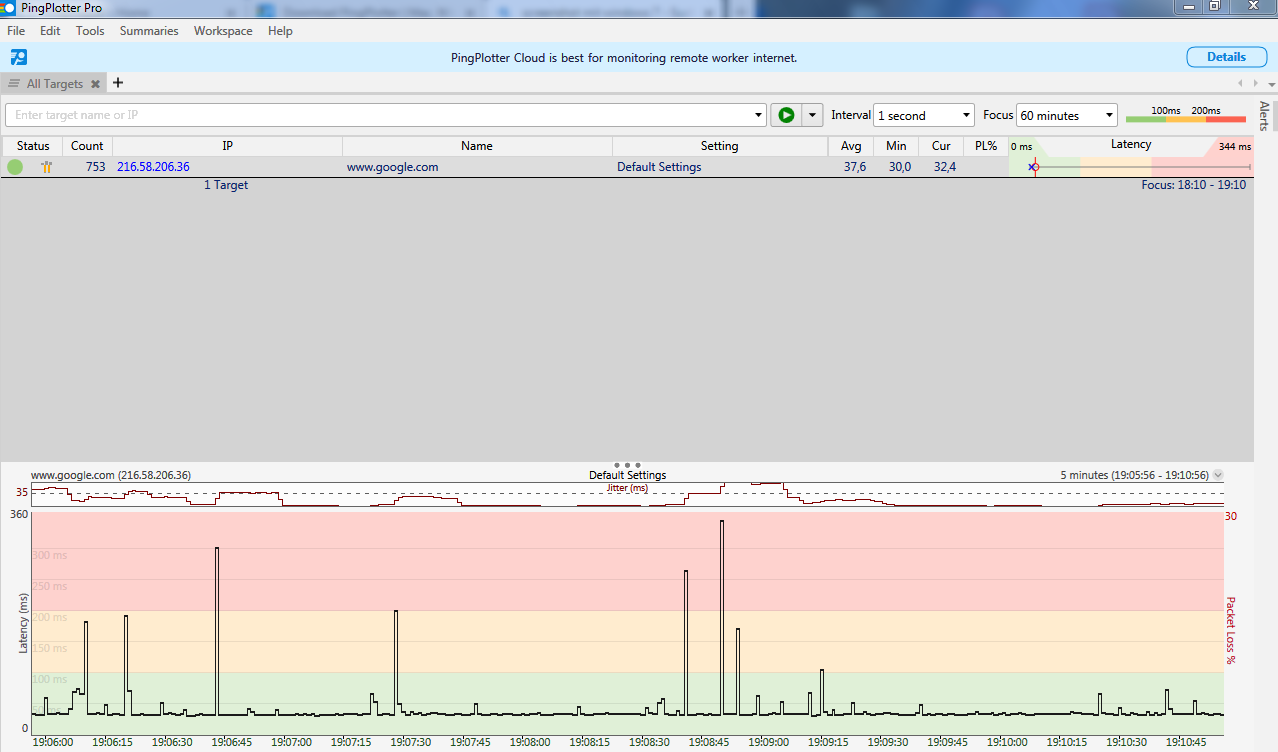 Das ist nicht der klassische Pingplotter, sondern der Pinglogger. Der zeigt keinen Trace. Die Information ist nutzlos.