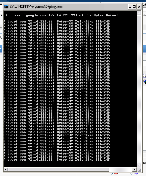 Antwort von 66.102.9.104: Bytes=32 Zeit=99ms TTL=239