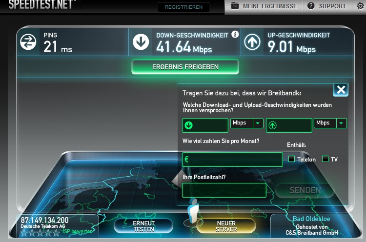 FR33 schrieb:Hi, habe die seite jetzt verwendet und den test 3 mal gemacht. Test 1: 79ger ping - Test 2: 35ger & Test 3: 37ger ping.