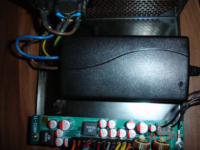 Mein altes kaputtes Bequiet habe ich ausgeschlachtet und wollte da das Pisco Netzteil mit Platine einbauen,damit das Gehäuse von außen dicht ist.