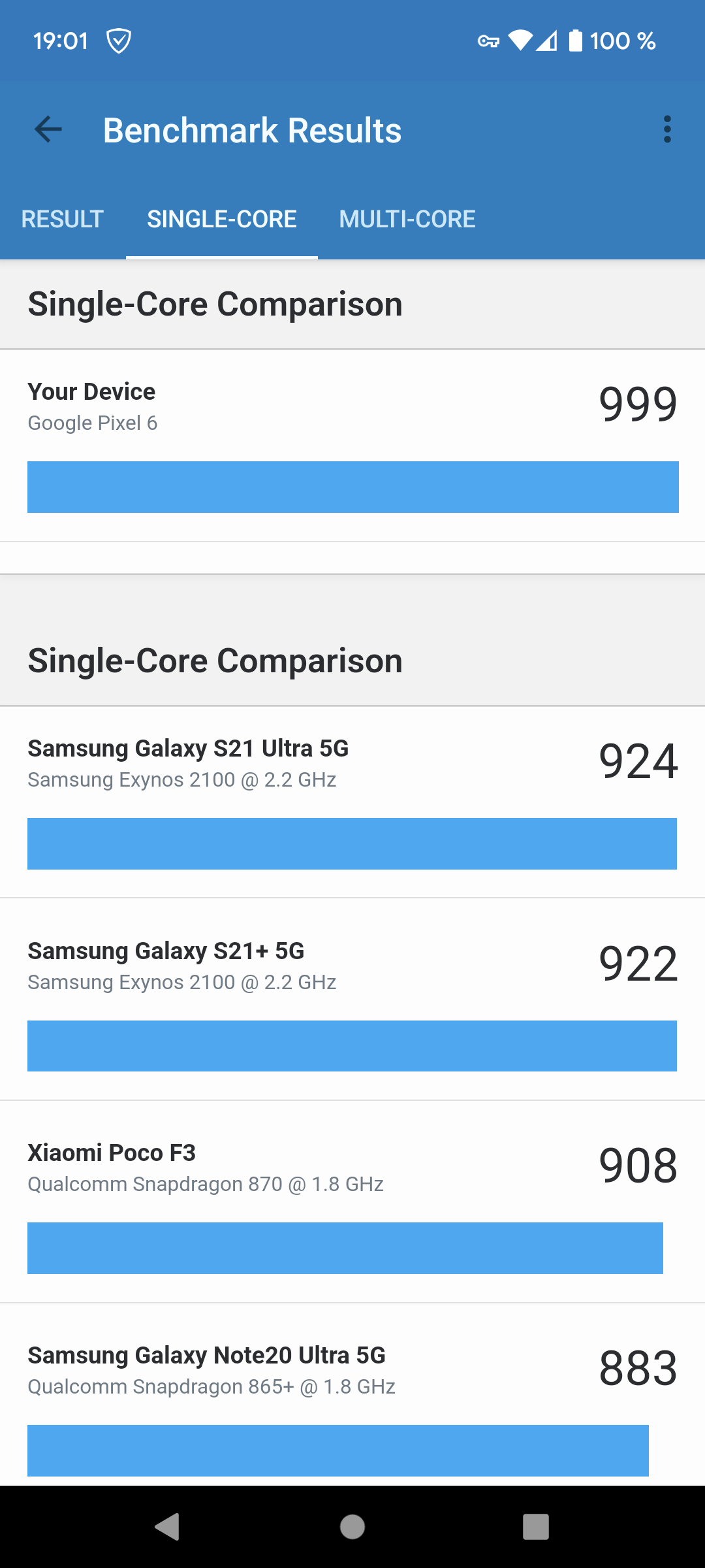 Das S21 Ultra liegt im Geekbench 5 SC leicht vorne mit 100 Punkten Unterschied. Im MC sind es jedoch deutlich mehr. 2900 vs 3600 zu Gunsten des S21 Ultra. Dafür hat das Pixel 6600 Punkte im WildLife und das S21 Ultra 5700.