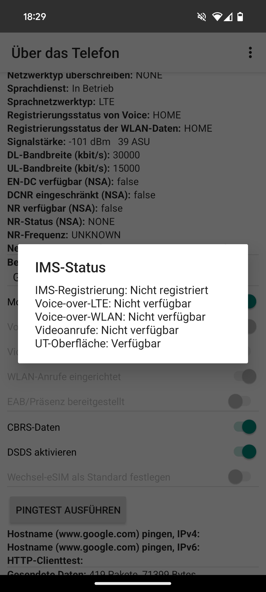 Stelle ich die Option "2G zulassen" auf an habe ich wieder Telefonie mit den oben genannten Problemen und wärend des Gesprächs läuft das Internet im Edge Mode.