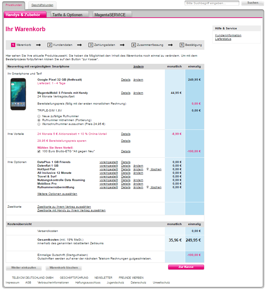 Zu dem Smartchecker Angebot, das ist nicht günstiger als bei der Telekom direkt. Die 10€ Onlinerabatt gibts immer.
