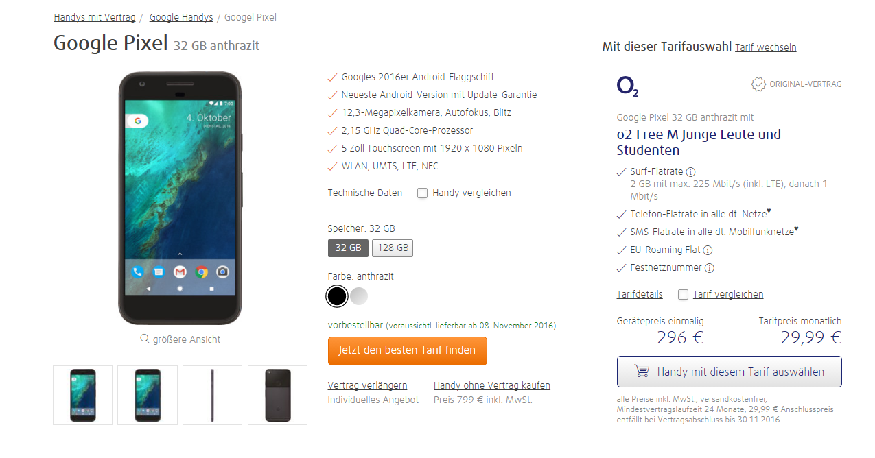 Endlich gibts das Google Pixel schon in den ersten Shops in Österreich: